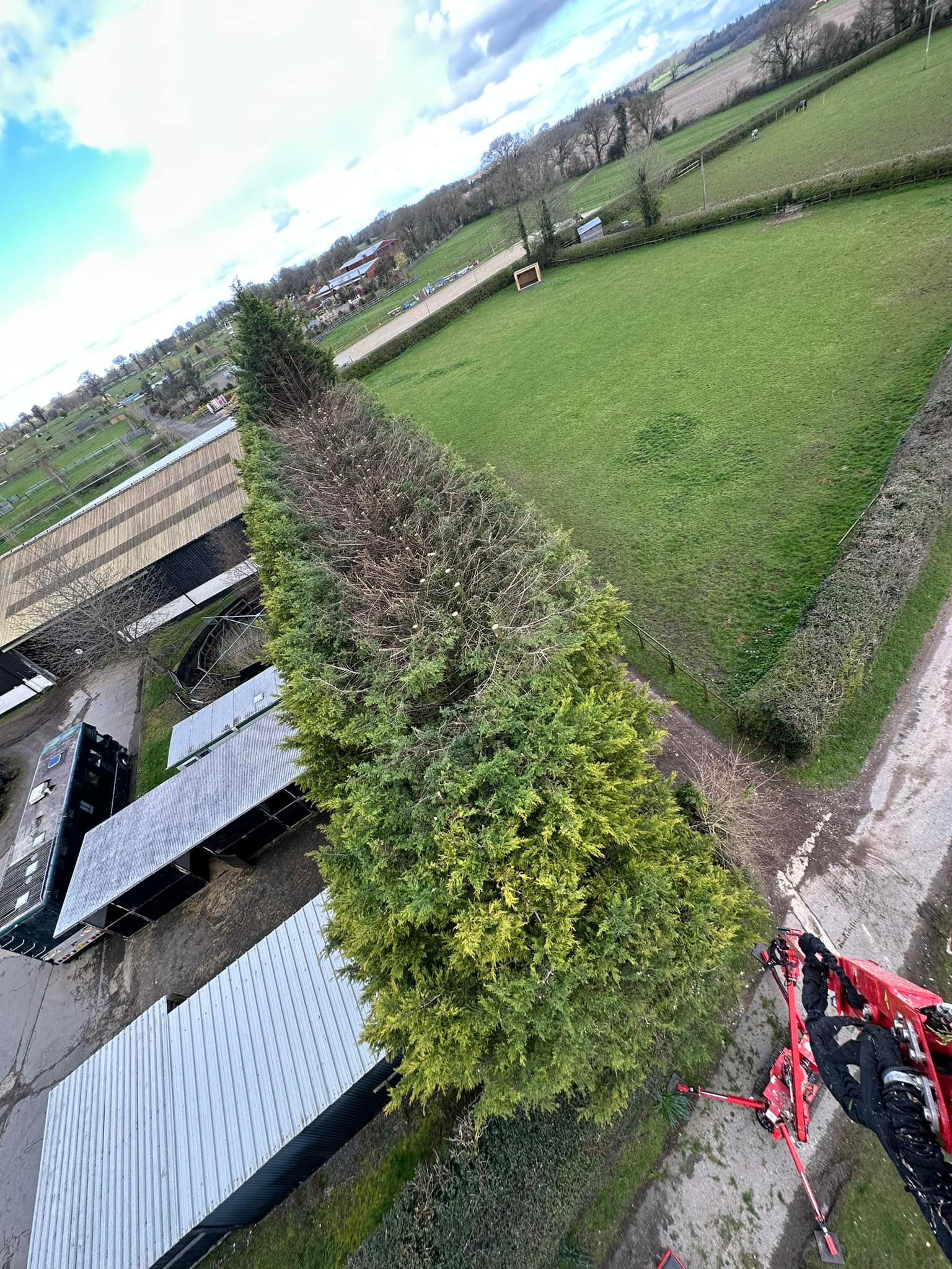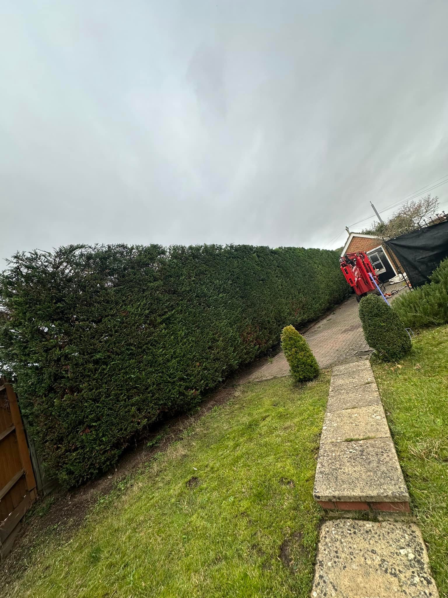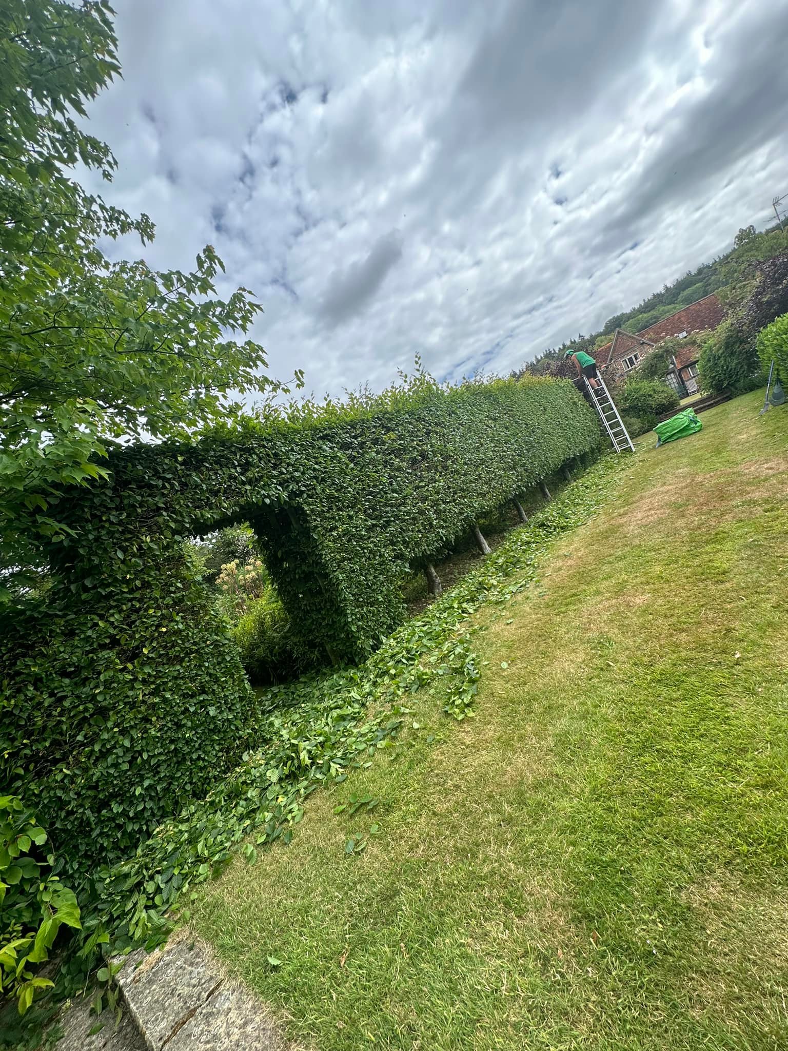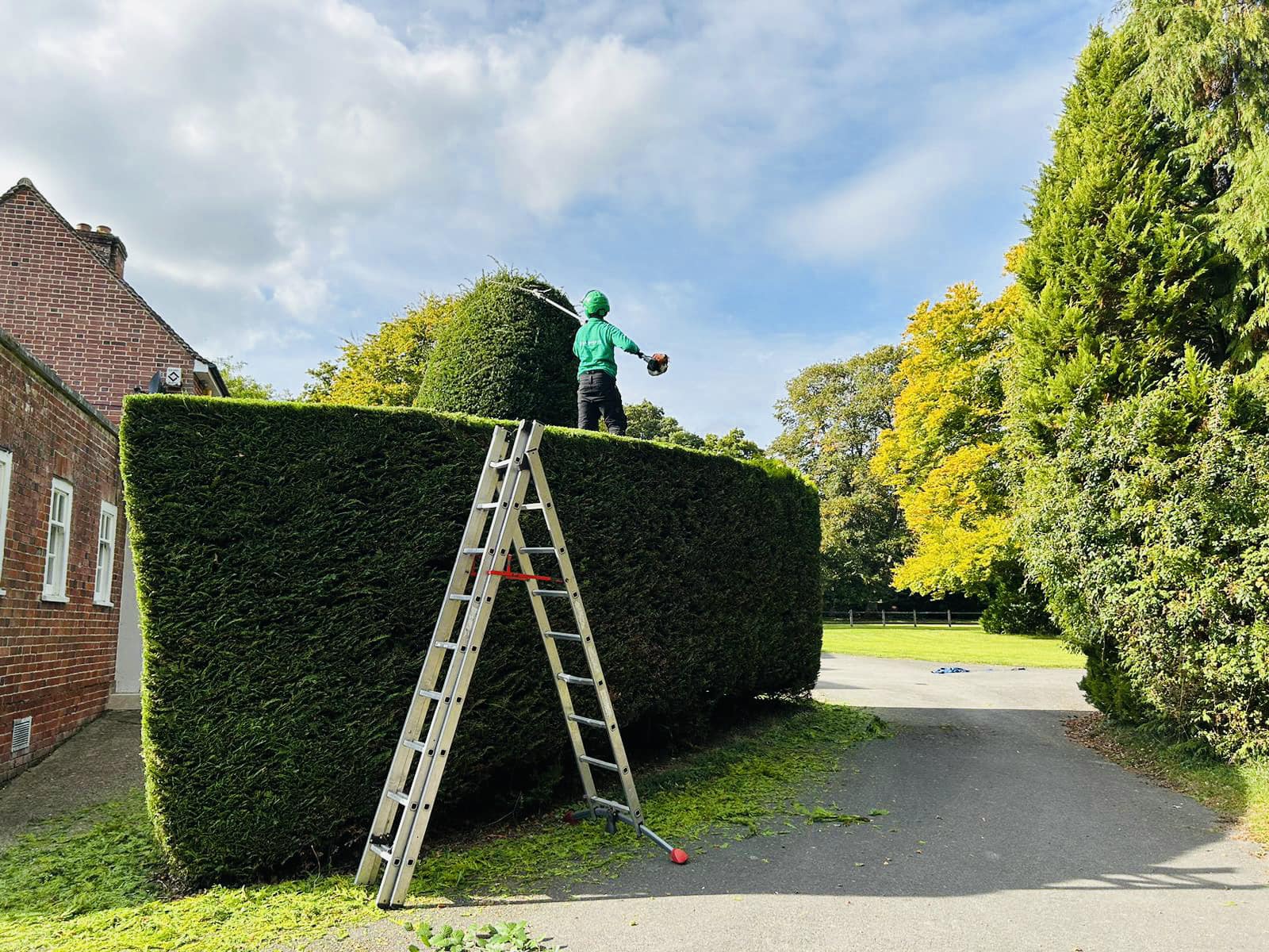 For taller or more difficult hedges, we use ladders, climbing techniques, or specialist equipment to ensure a safe and consistent cut from top to bottom.